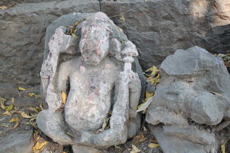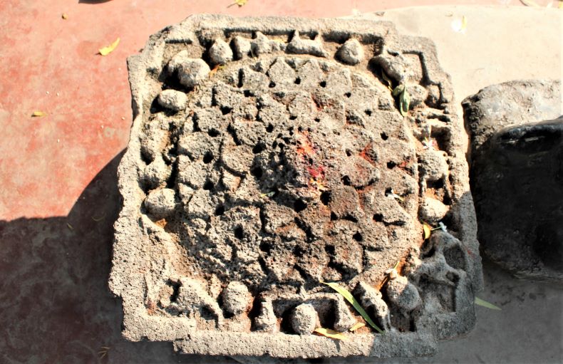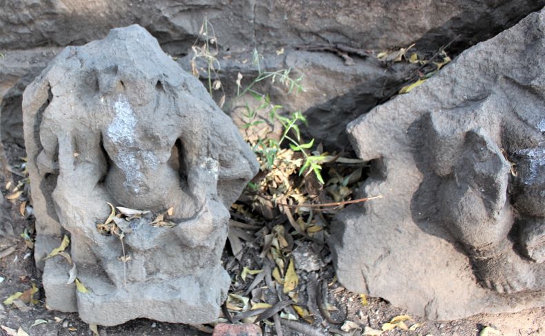 Loose Sculpture: In front of the temple, there are two Gaṇeśa, a Viṣṇu, Devī images, and a rāśīcakra. The rāśīcakra is exceptional, with a maṇḍala-like structure and small sculptures of animals, birds, and humans carved on it from all sides. Additionally, a sculpture of a yogī seated in padmāsana is seen to be carved on a rock in one of the niches.