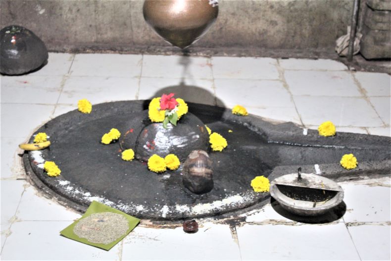 Antarāḷa and Garbhagṛha: Two empty devakoṣhṭhas are on the side of the antarāḷa, which measures 250cm in length and 275cm in width. Two columns are used as props in the facade of the antarāḷa, and the beam’s load has been weighed on them. There are also two empty devakoṣhṭhas on either side of the antarāḷa. The entrance of the main garbhagṛha has triśākhās, which is similar to the entrances of the other upagarbhagṛhas. There is an image of Gaṇeśa on the lalāṭapaṭṭa, and after this, we reach the garbhagṛha. The length and width of the garbhagṛha is 272cm, and there is a śivaliṅga in the center with a devakoṣhṭha behind it, which probably had a sculpture of Pārvatī. A large vessel is kept in the garbhagṛha to collect the abhiṣeka water. All the vitānas in the temple are of flat type.