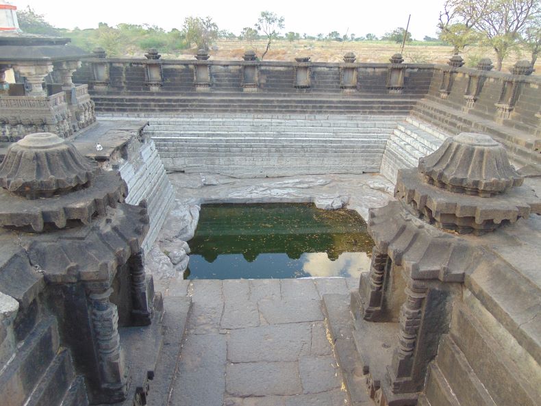 Puṣkariṇī (Stepwell) and the maṇdapā and the dattatreya temple ahead