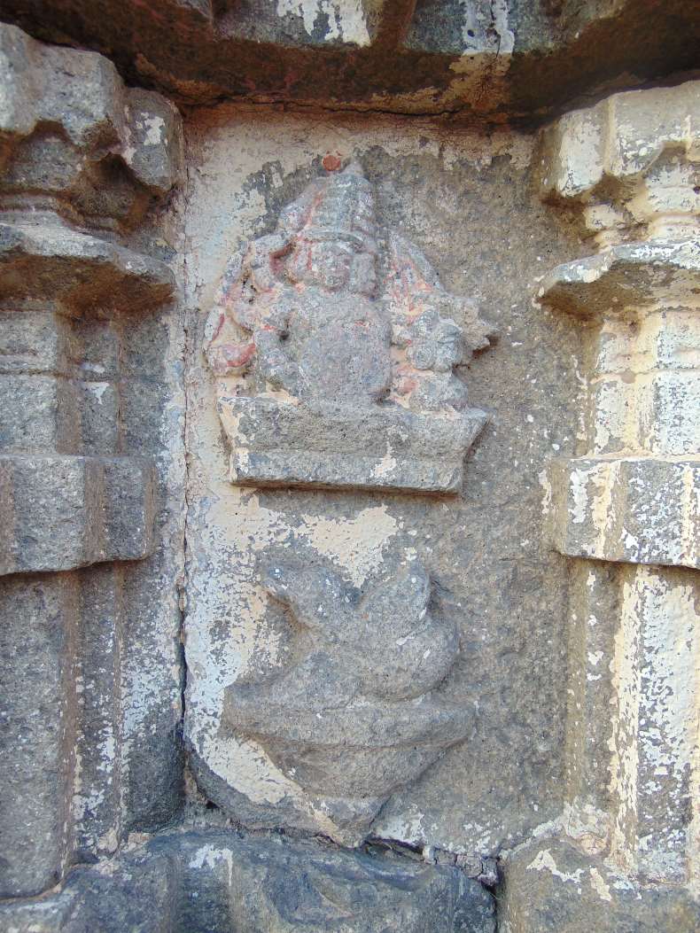 Garbhagṛha: The entrance and the doorjamb of the garbhagṛha are the same as that of the gūḍhamaṇḍapa. The lintel has a Gaṇapatī and the threshold has a kīrtīmukha and other sculptures carved on it. The upper part of the lintel has Sarasvatī and four other sculptures. There are two śivaliṅgas in the garbhagṛha. It seems they were established later after removing the original idol there. There are empty niches in the east, south, and west side walls of the garbhagṛha.