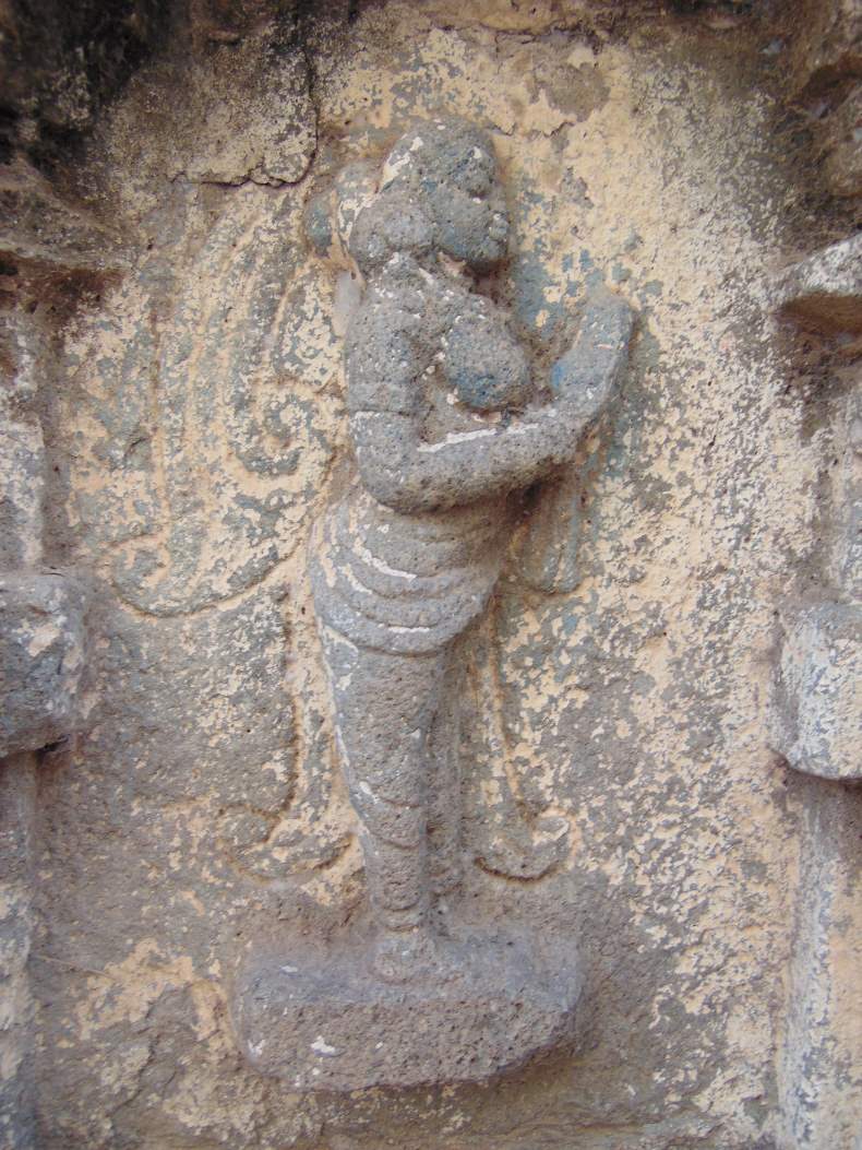 Antarāḷa: In the antarāḷa section of the temple, two niches are present, housing idols of Gaṇapatī and a fragmented Viṣṇu, both set upon pedestals.