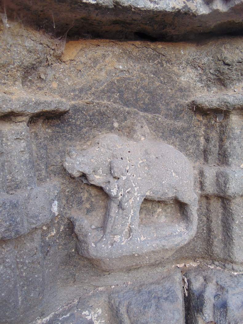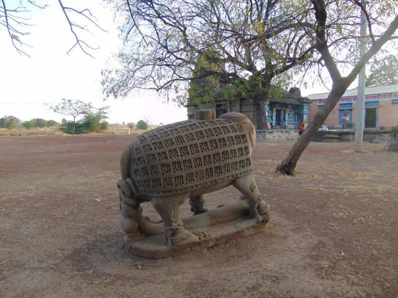 Yajña-Varāha: There is a beautiful Yajña-Varāha sculpture on the temple premises. The statue is intact except for the mouth part. We see conch, lotus, mace, and discus at the feet of the Yajña-Varāha. His tail is carved like a noose. Beneath the figure, we see a snake god in a reverence position. There are small Viṣṇu figures carved on the body of Yajña-Varāha. Such Varāhas are also found in Chakan, Bhuleshvar, and Pimpari-Dumala in Pune district.