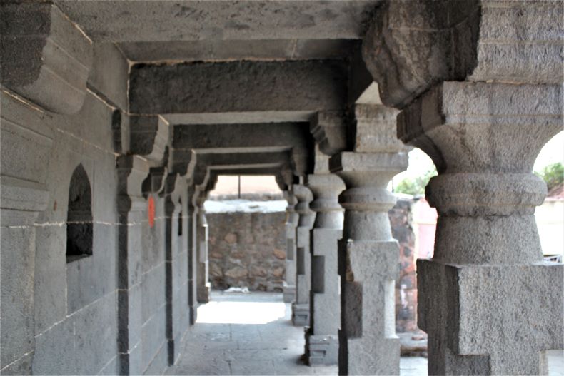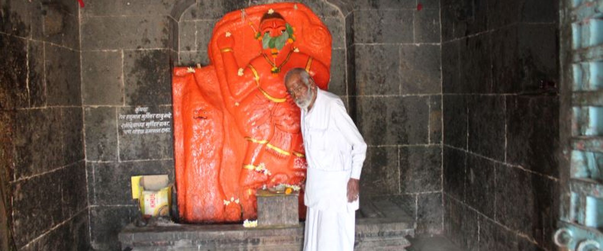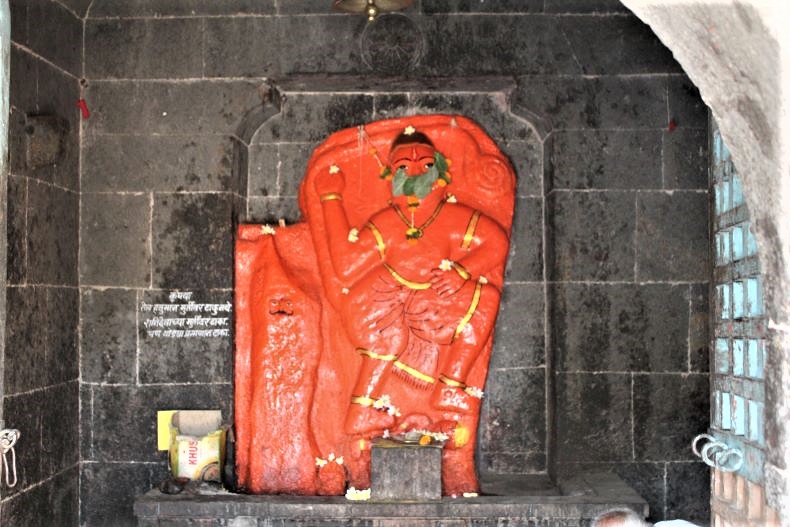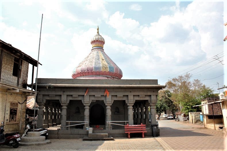 Mārutī temple: This temple (18.744891, 74.098290) is positioned east of Kāḷabhairavanātha temple and boasts impressive architecture. An inscription on the temple facing south states that it was built on May 18, 1767 CE. The temple priest, Śrī. Pandurang Tukaram Pandey, is Gurav by caste.