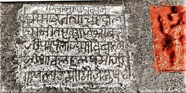 Interpretation: The Mārutī temple was built by the rulers from the Palande clan, including Baswaji Patil Palande Mokadama and Baloji Palande Patil Valada Lakhamoji Patil Palande from Mouje Mukhai. The construction started in śake 1689, Sarvajīta Saṃvatsara, on Vaiśākha vadya 5 pañcamī and on Śumādī year 1176. The date of completion was Monday, May 18, 1767. The inscription ends with the auspicious svastivacan Śubhavasyu (Śubhaṃ Bhavatu?). This inscription is significant because it mentions the Suhūra year along with the Śaka year and provides information about the Palande family’s involvement in building the temple. The inscription also salutes Śrīnātha, indicating the importance of Kāḷabhairava in Mukhai village.