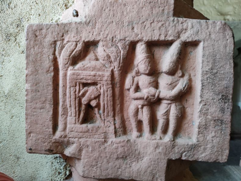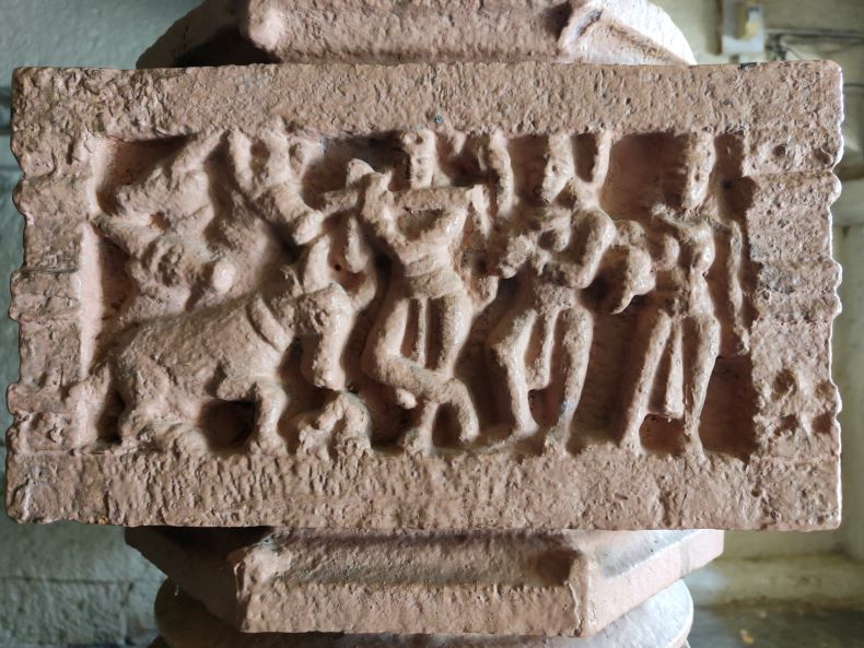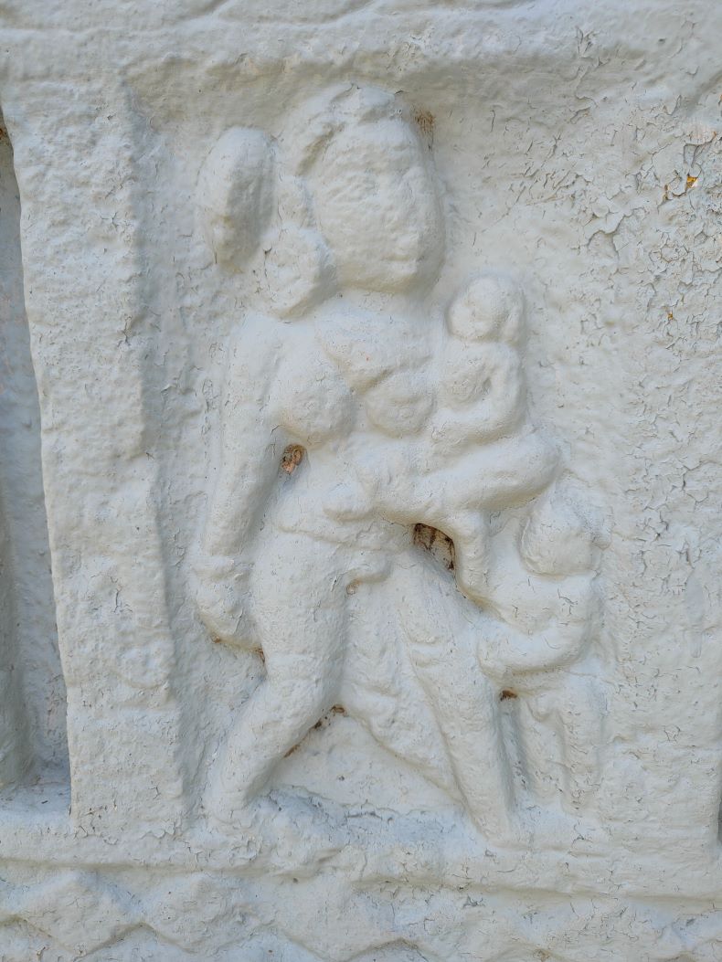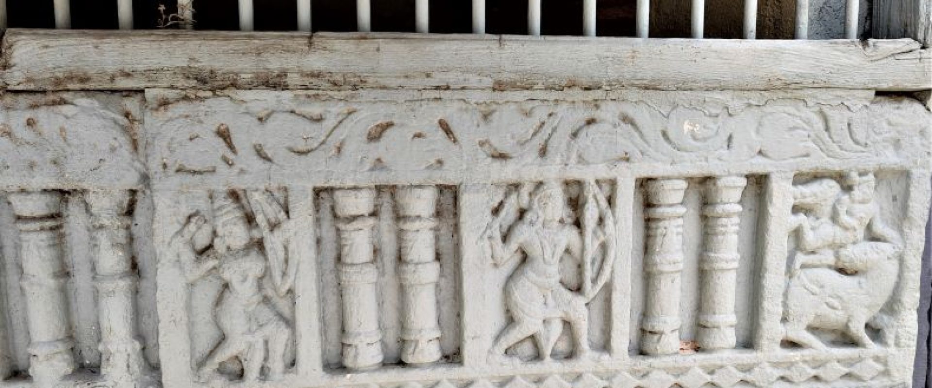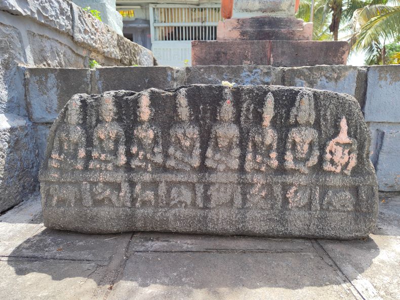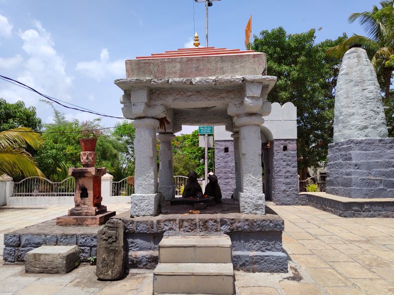 Additionally, several detached sculptures are placed in front of the temple, possibly belonging to the temple. The most significant among these is the Saptamātṛkāpaṭṭa panel, which is in a wornout condition. Such Saptamātṛkā panel with the vahānas is very rare in Pune district. Furthermore, the temple grounds house three samādhis.
