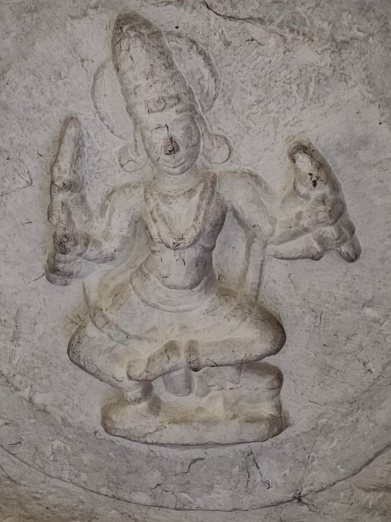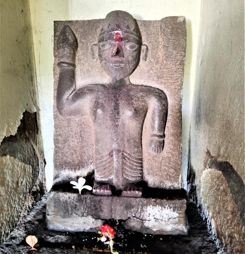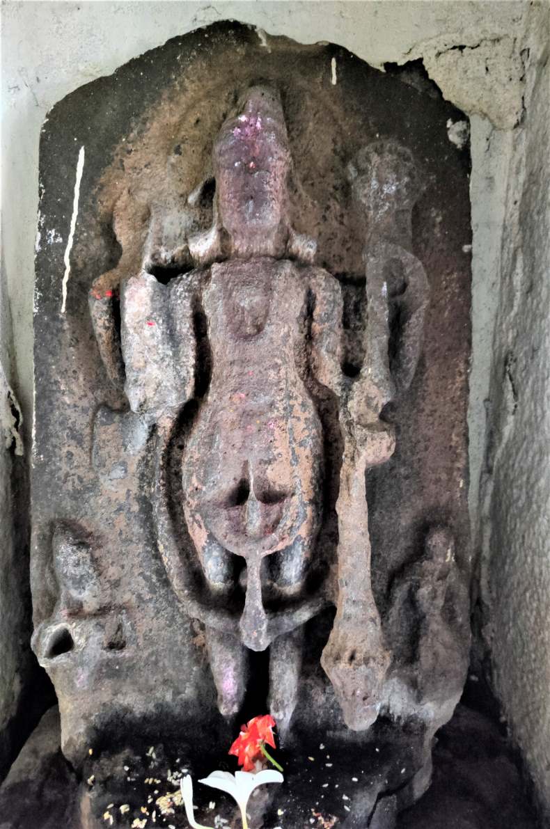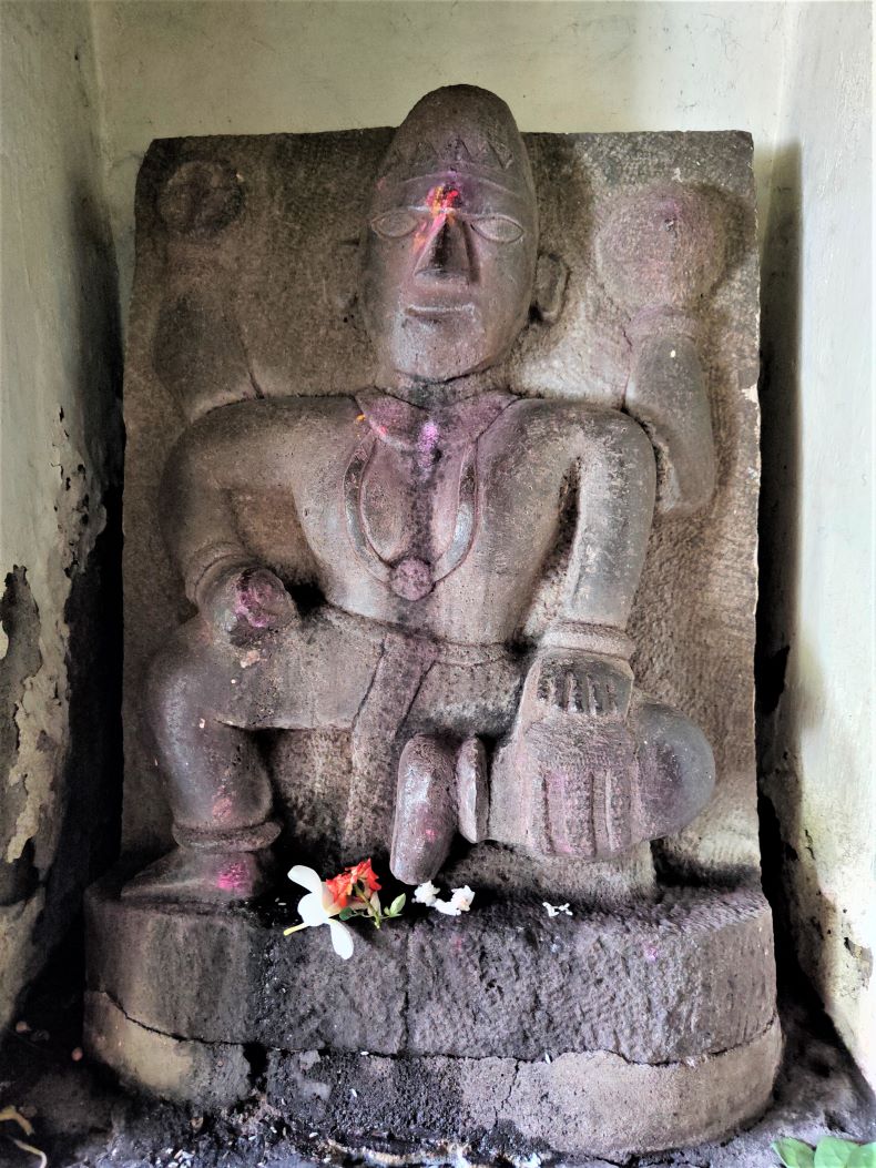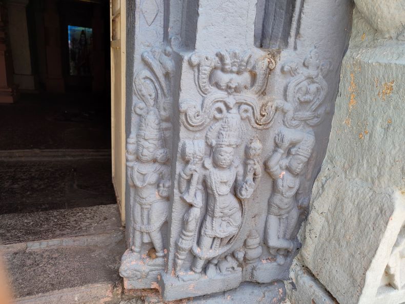 In the aedicule in the south of gūḍhamaṇḍapa, there is, what seems to be, a Viṣṇu sculpture. The sculptures in the aediculae look primitive.