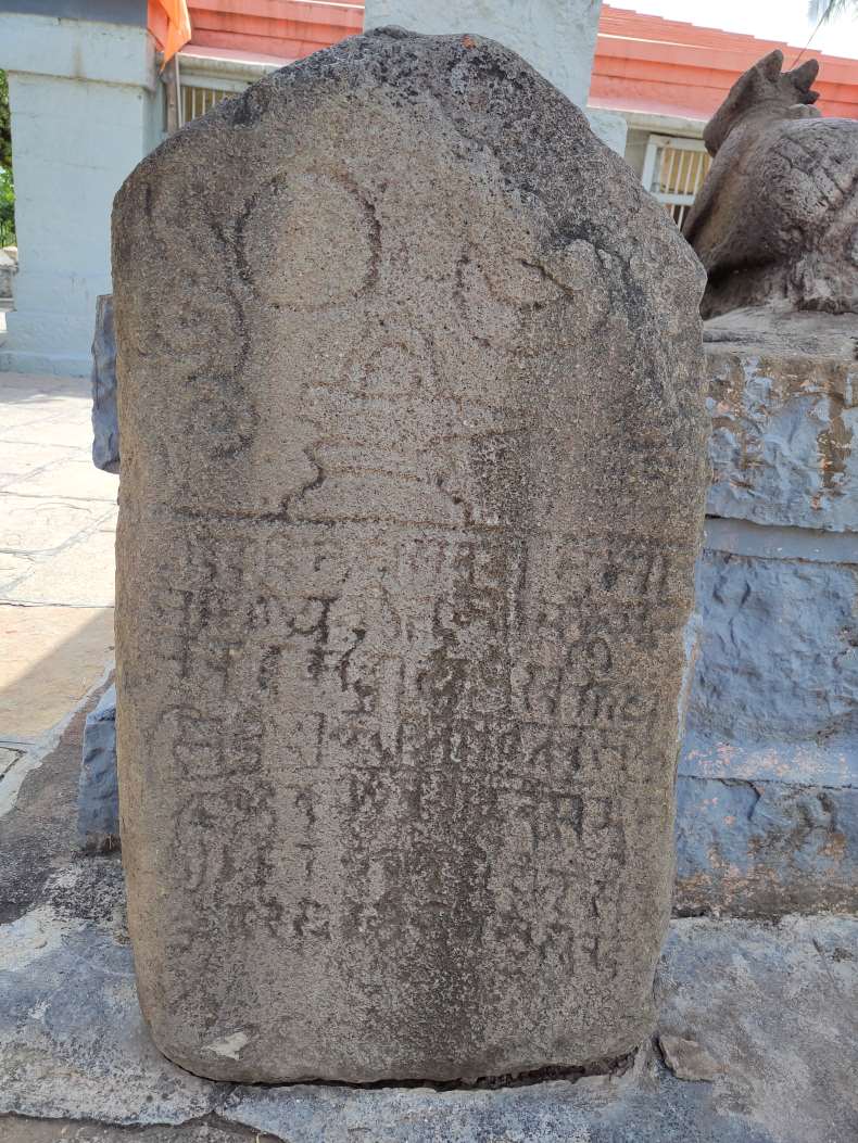 Inscriptions: There are two inscriptions altogether in the temple and the premises. Of them, one inscription is on a loose stone slab. The inscription is contemporary to the temple. The second inscription is in Devanāgarī and easily readable, and seems to be recent. The inscription has four lines and mentions Rajāram, a mason from Jejuri. The inscription near the nandīmaṇḍapa is important. It is in Devanāgarī script and Sanskrit language. There are seven lines in this inscription. Sun and moon have been carved on the top. A Śivaliṅga is also carved beneath those. According to Mr. Anil Dudhane, this inscription contains ślokas of Śiva. The inscription is wearing off and it needs to be preserved.