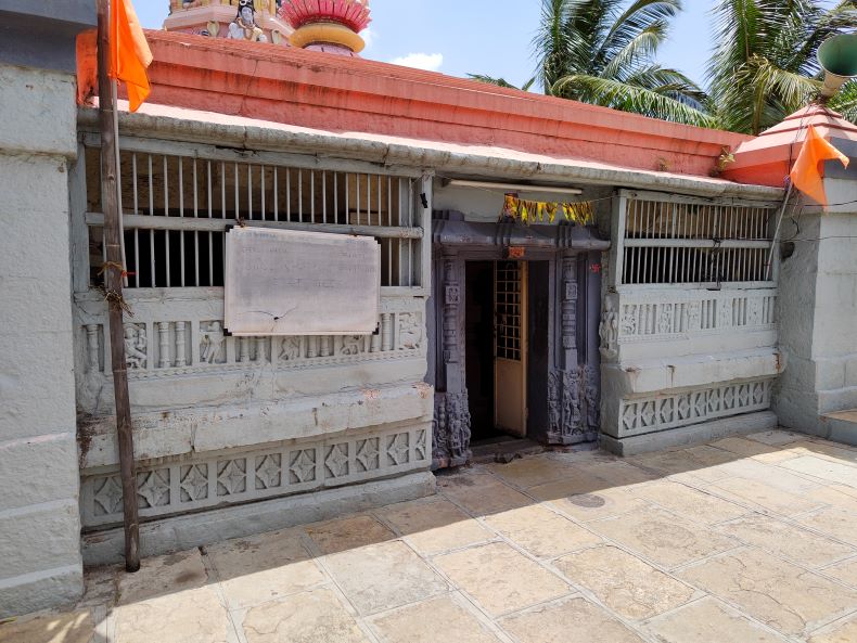 Nandīmaṇḍapa: There is a square in front of the temple and two Nandī sculptures are installed in it. Both of them are facing Śiva in garbhagṛha. There is a Śivaliṅga before these Nandī sculptures. The pillars in the maṇḍapa indicate that it was renovated.