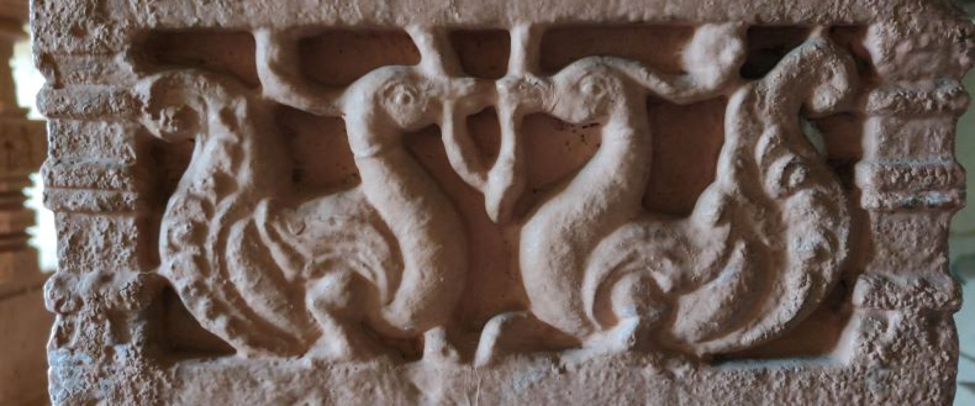 On the western side, Kṛṣṇa is depicted along with cattle and Gopikās. Two swans are carved on the north.