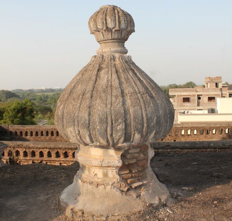 The onion-shaped portion of āmalaka on the śikhara of antarāḷa.