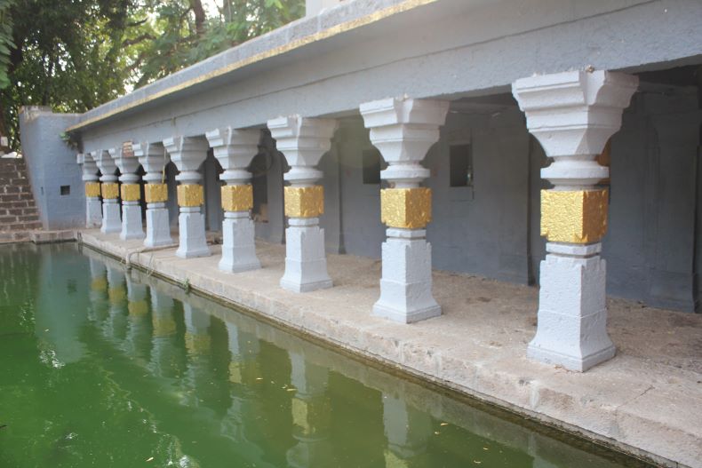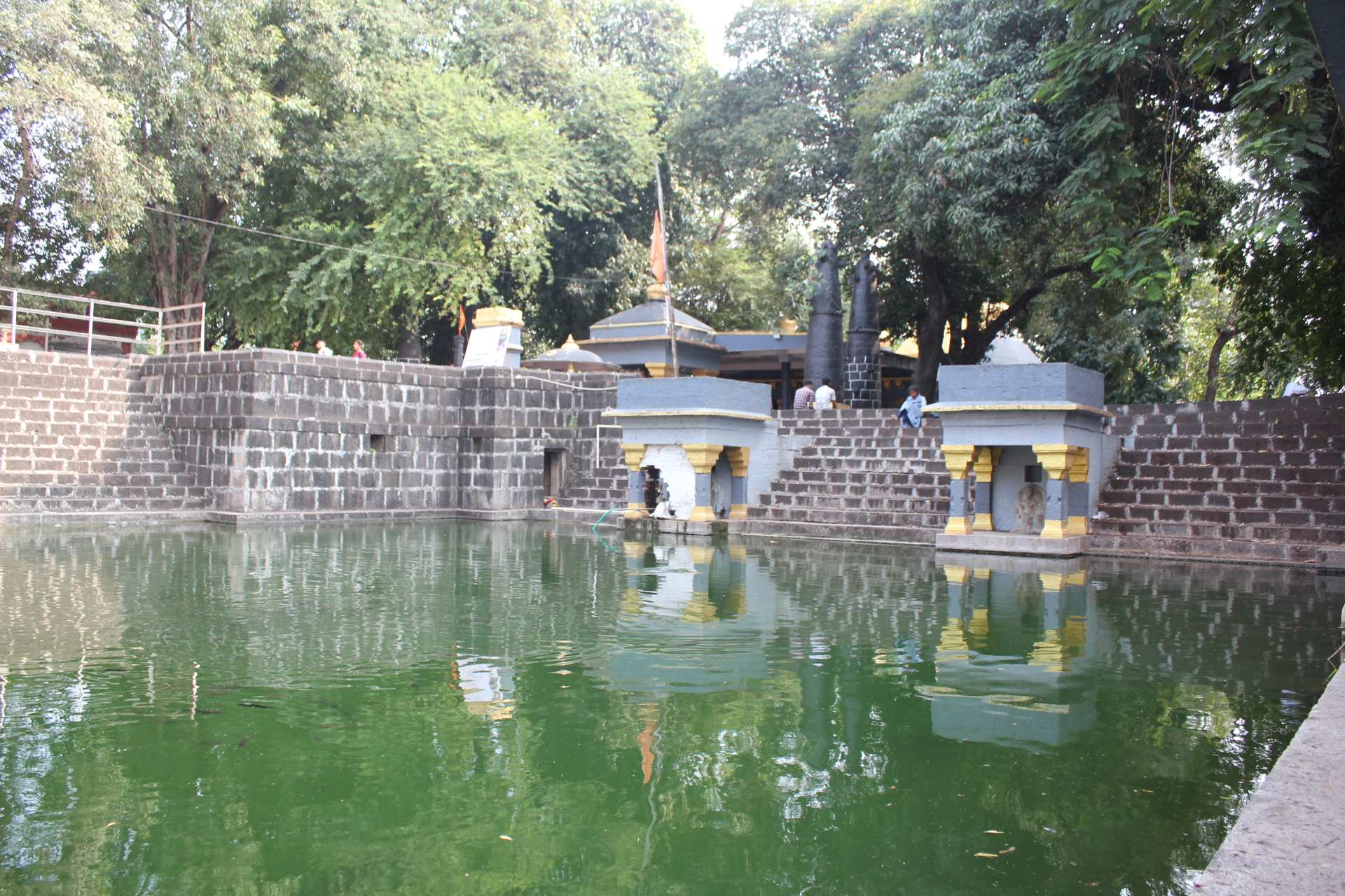 To reach Siddheśvara Temple, take the road on the right after crossing the Bhima River from Chakan City towards Rajgurunagar. On the way, one will pass by a monument dedicated to Rajguru. After a short distance, we will reach the Siddheśvara Temple. The premises of the temple are stunning, surrounded by lush greenery and the sounds of birds chirping. The Bhāgīrathī Puṣkaraṇī is home to fish and turtles, creating a very soothing atmosphere.