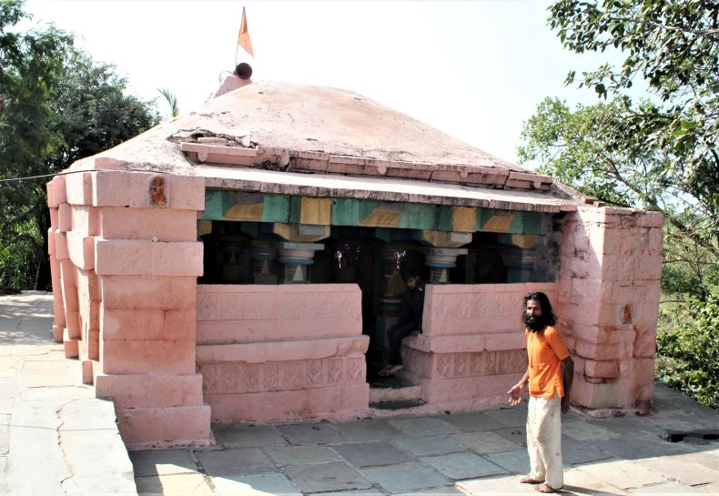 Temple exterior: There is no carving on the exterior of the temple. Some of the original bricks on the top of the temple are still visible. As there is a stream next to the temple, the stream side of the temple is fortified and protected by a stone wall. There is a Dhuna of Daśanāmī Gosāvis adjacent to the temple. Currently Shri. Shankar Hole happily manages it.