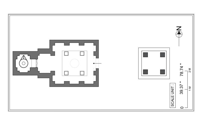 The antarāḷa, sized 202 x 202 cm, has empty devakoṣṭhas on either side. The garbhagṛha is 210 cm long and 200 cm wide. Its entrance is unadorned but features a clear stambhaśākhā. While the lalāṭapaṭṭa is carved, it lacks a Gaṇeśa sculpture. In each of the four corners of the garbhagṛha, an ardhastambha is placed. Inside, a śivaliṅga has been installed.